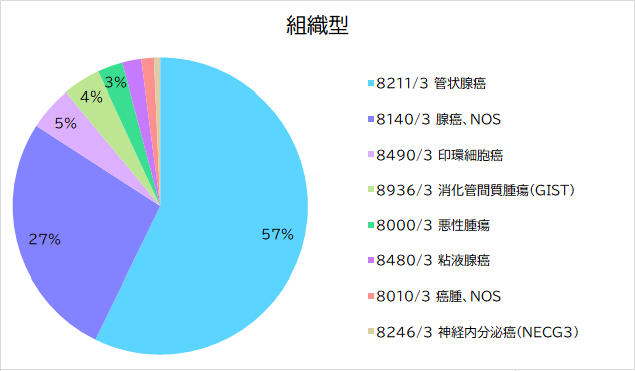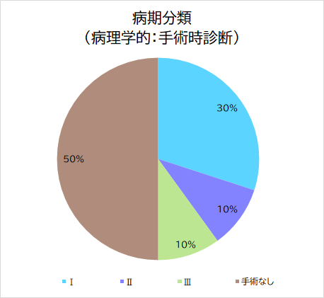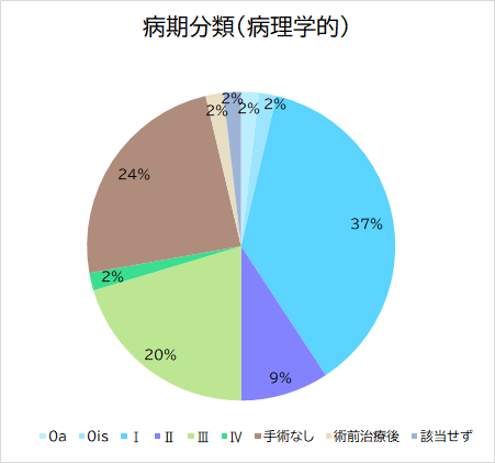 ・病期分類(病理学的)とは、治療(手術をして時点)における病期を指し、手術を実施していない症例は「手術なし」症例として登録。また、手術実施前に他の治療を行った症例は「術前治療後」として登録。